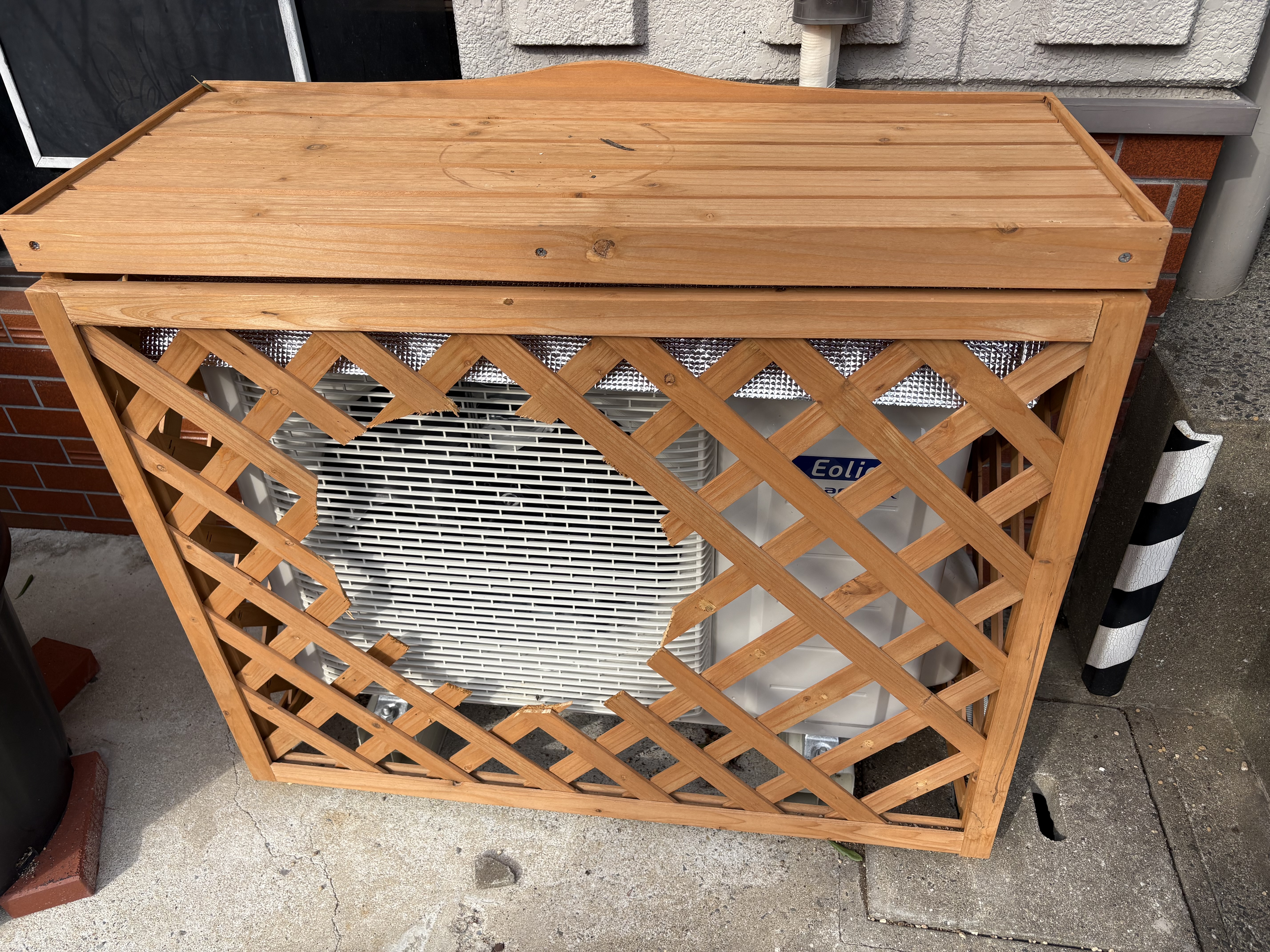 花高町に越してきて10年になり、その時に買った電化製品がパラパラと壊れて来ました。治療院のエアコンを購入後室外機にカバーを取り付けましたが、中々の出来栄えです。