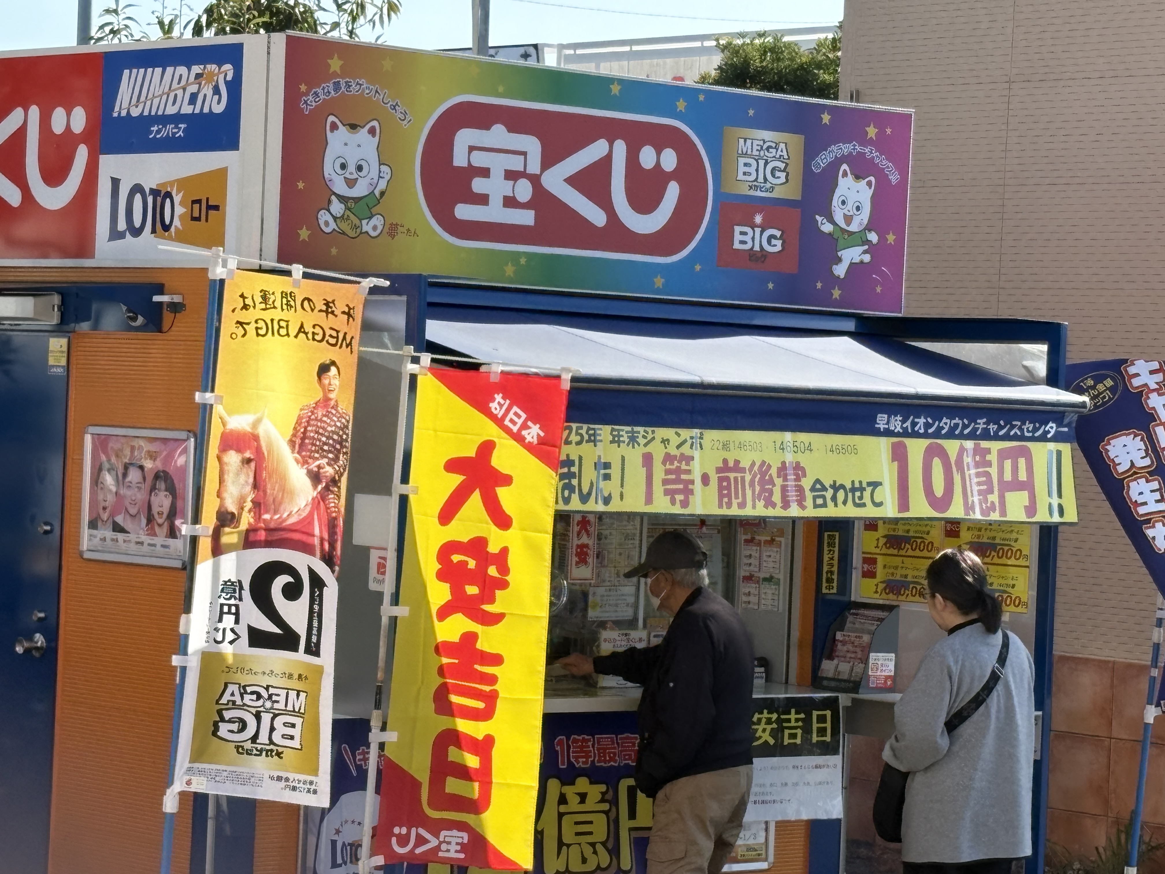 普段私は宝くじは買わないのですが、近くの宝くじ売り場で10億円が当たりました。10億円の大きな看板と普段より多めのお客さんがいて、暫くは賑わいそうです。